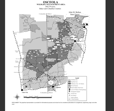 By comparison, Osceola WMA has a more open schedule. For example, the 2025–2026 brochure shows multiple hunt zones and separate dates for still hunts and dog hunts:
