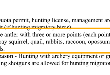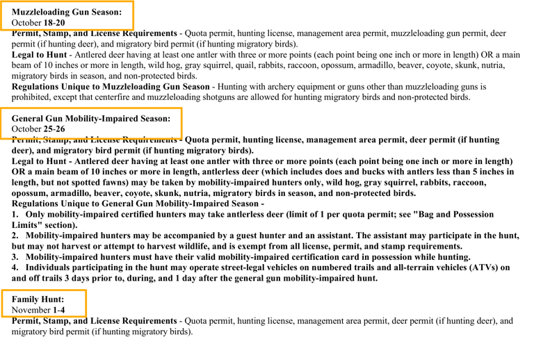 Each season also specifies which weapons or methods of take are allowed. These change depending on the type of season and the area: