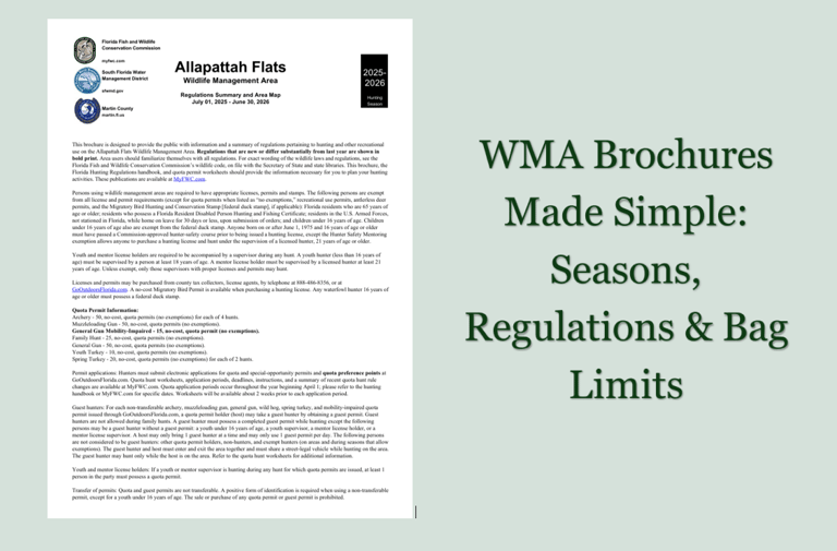 WMA Brochures Made Simple: Seasons, Regulations & Bag Limits